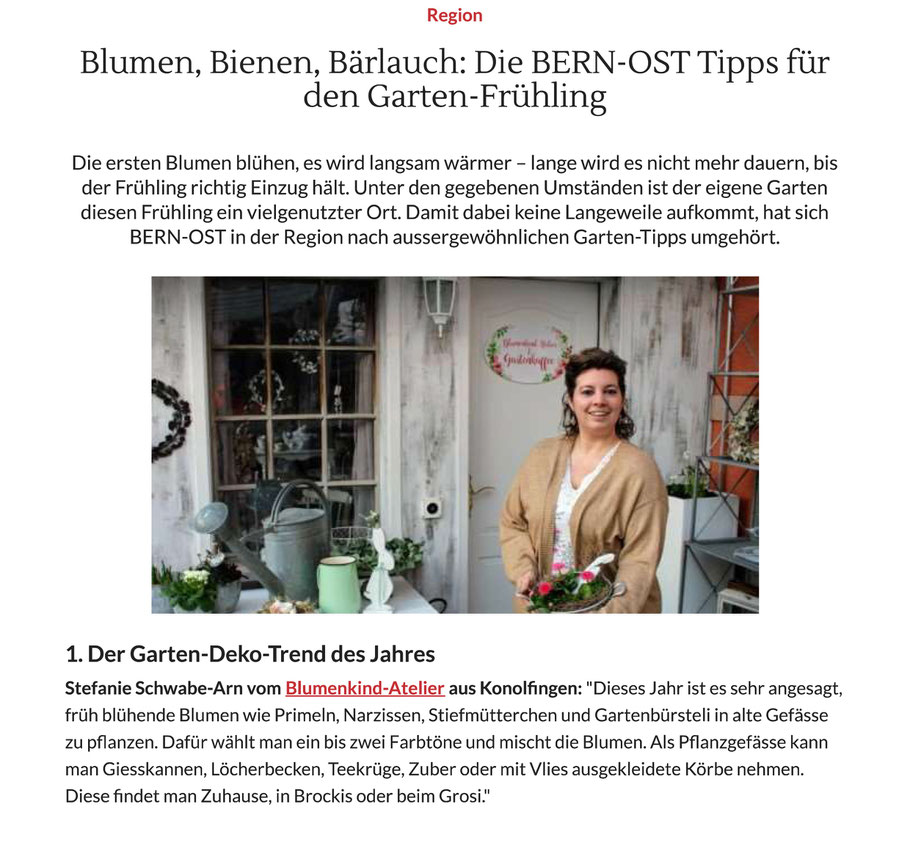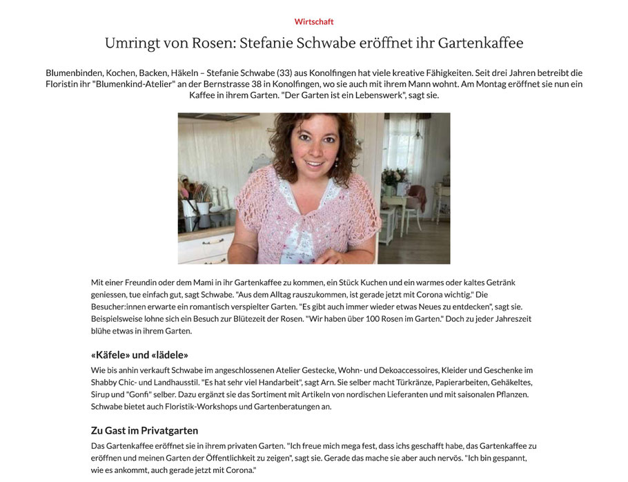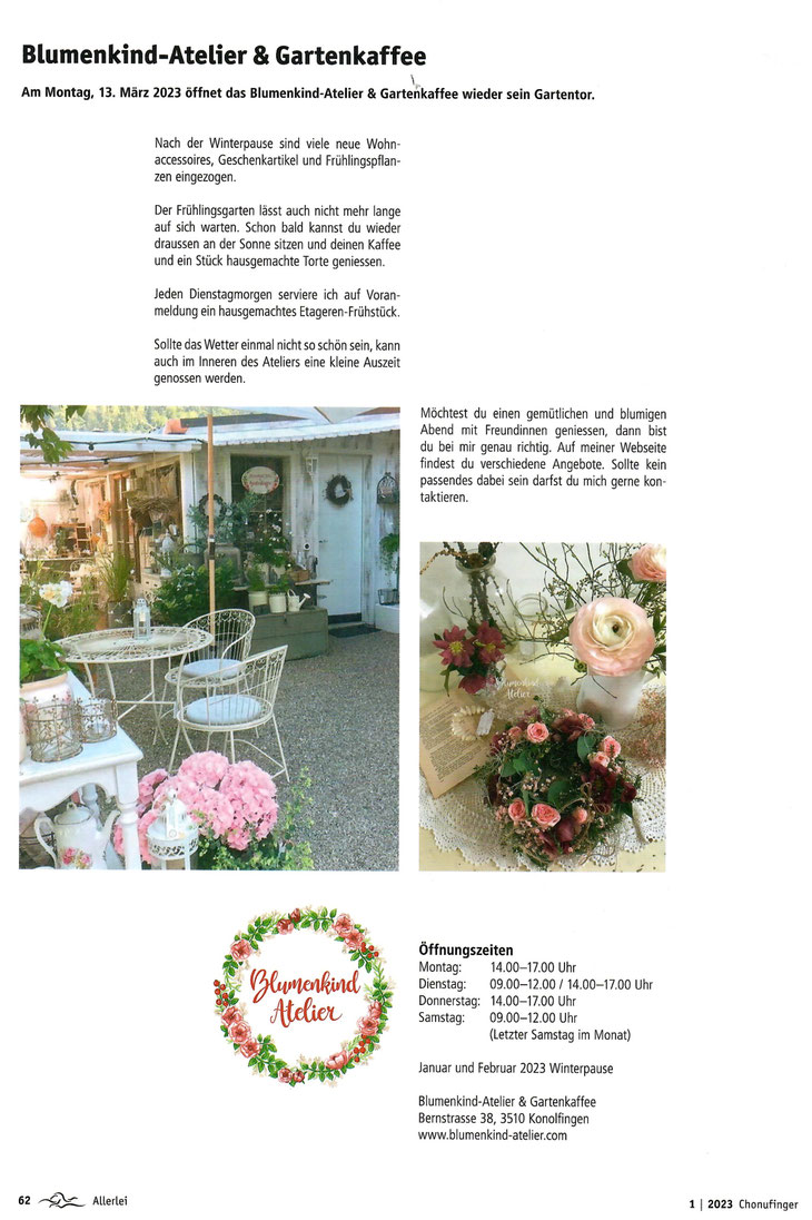 Das Blumenkind- Atelier & Gartenkaffee wurde schon in verschiedenen Zeitschriften und Plattformen erwähnt, hier einen kleinen Ausschnitt davon.